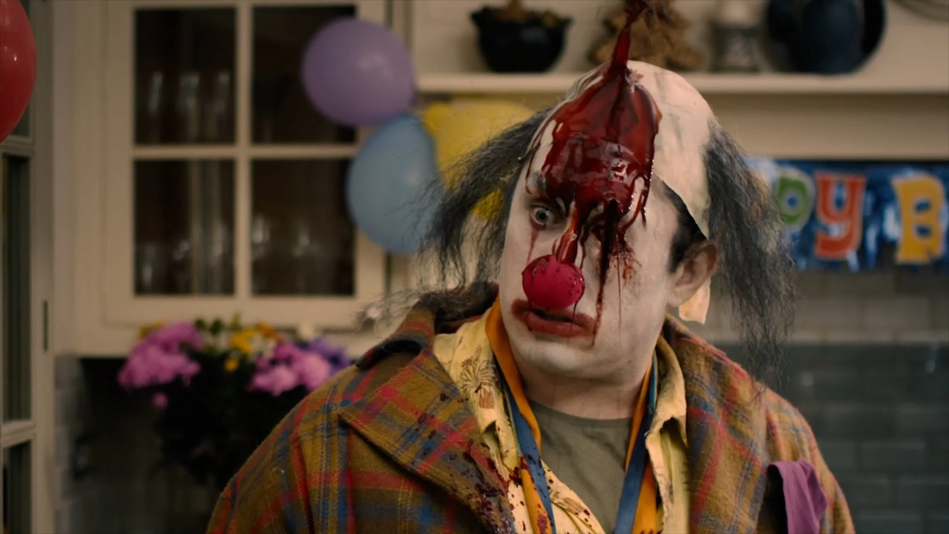 The gang discuss Stitches, the 2012 Irish film about a wildly incompetent bum of a clown who comes back from the dead to take revenge upon kids who sort-of-but-not-really caused his death. An odd movie, with an unexplored but interesting clown mythology, a weird mix of tones, a misplaced narrative focus, bouts of idiocy and illogic, and some surprisingly brutal and "fun" kills (i.e. fun if you hate children, like we do). Before the movie begins, J.R. imagines a film premise that would really make use of the title "stitches", and afterwards Derek learns us about Liches at D&D school.
